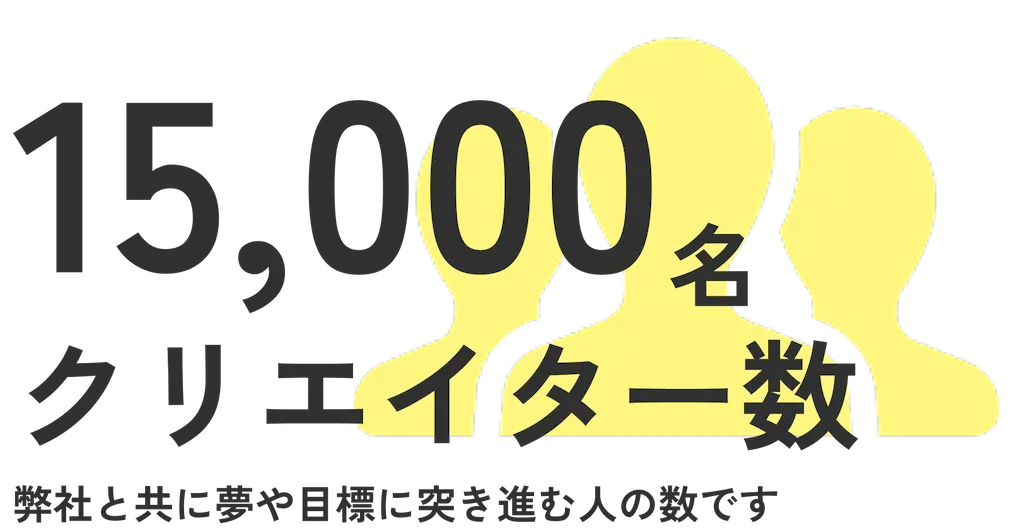 クリエイター数15,000名 弊社と共に夢や目標に突き進む人の数です